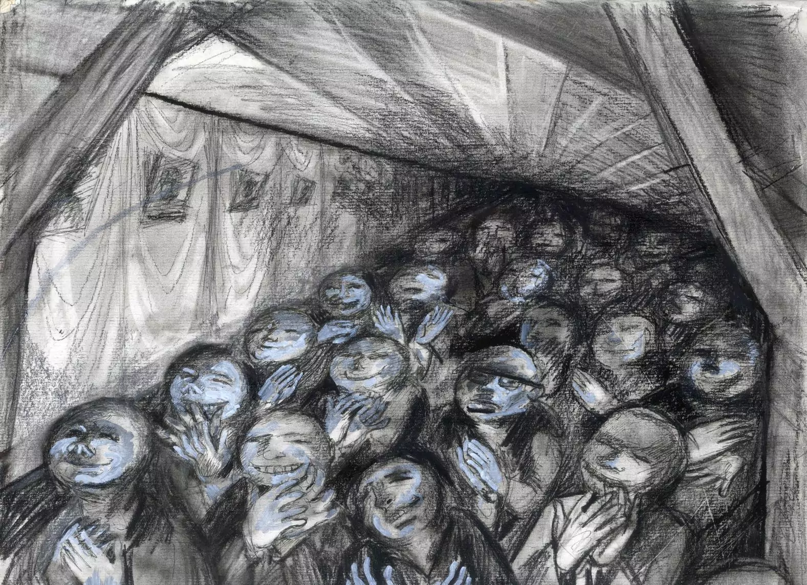 דובר מלא בחשיבות עצמית מדקלם סיסמאות בנאליות וחלולות, -כל הקהל מריע ומוחה כפיים בהתלהבות ממזויפת
