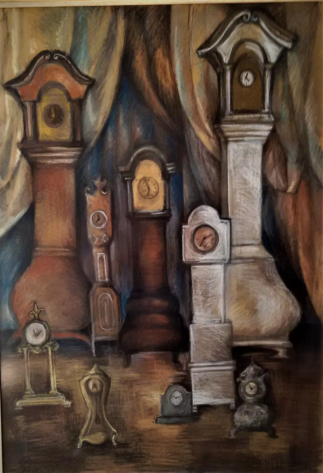 ספיה, ציור צבעי פסטל לא שמנוני על קרטון ביצוע, רישום פחם
